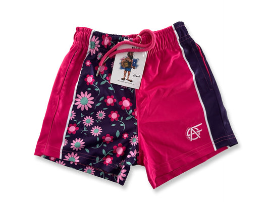 • Kids Pink Flowers Footy Shorts (With Pockets)