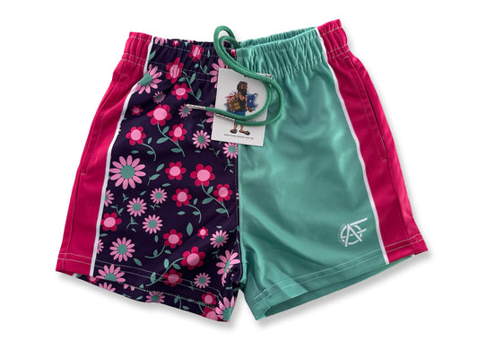 • Kids Green Flowers Footy Shorts (With Pockets)
