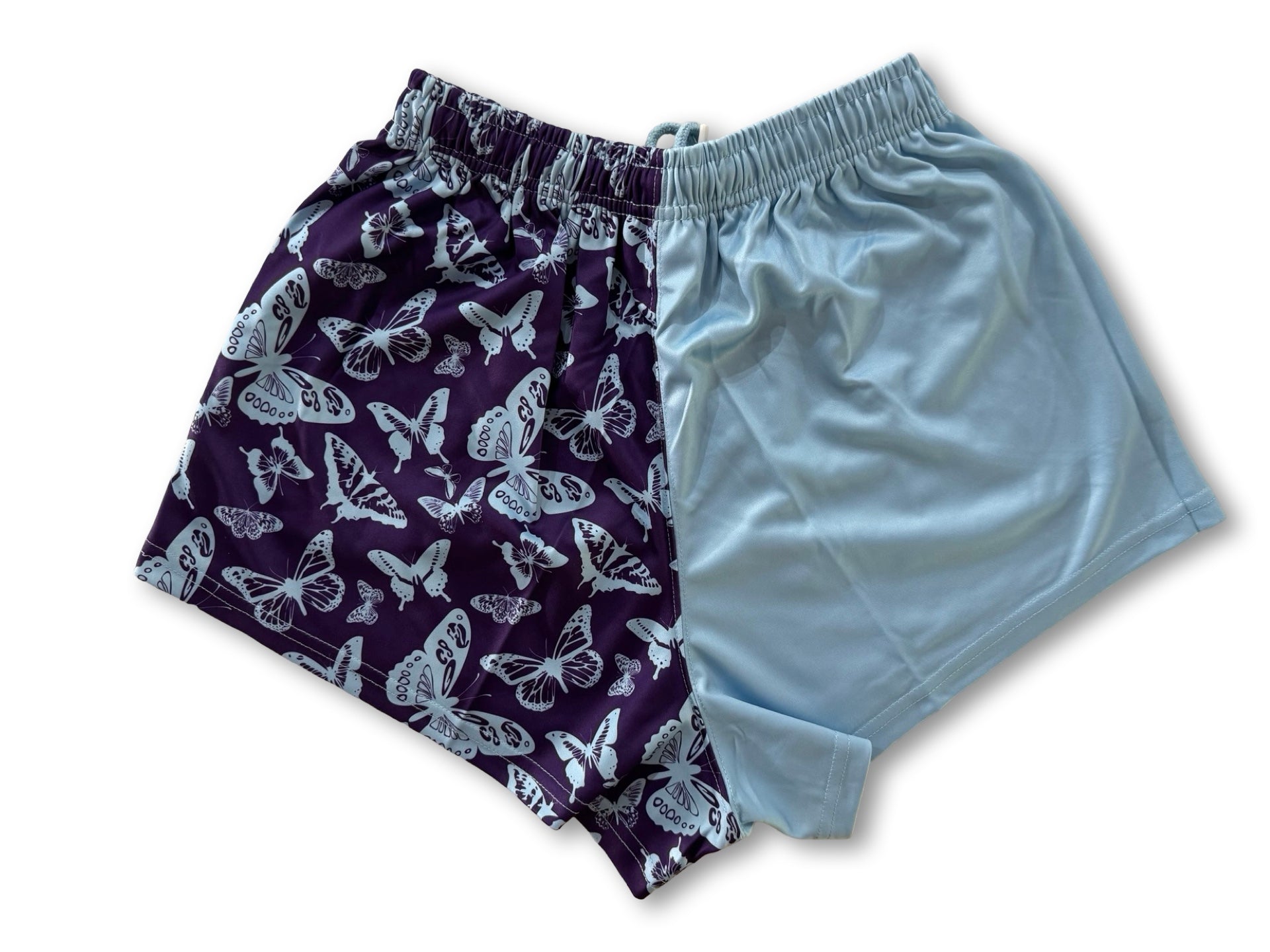 🦋 For the free spirits who can kick up dust and still look bloody graceful doing it. These butterfly print footy shorts mix soft sky blue with bold navy and a flutter of butterflies that scream "wild, but make it pretty". Perfect for the gals who love a bit of country charm wrapped up in cheeky footy shorts you can wear anywhere.