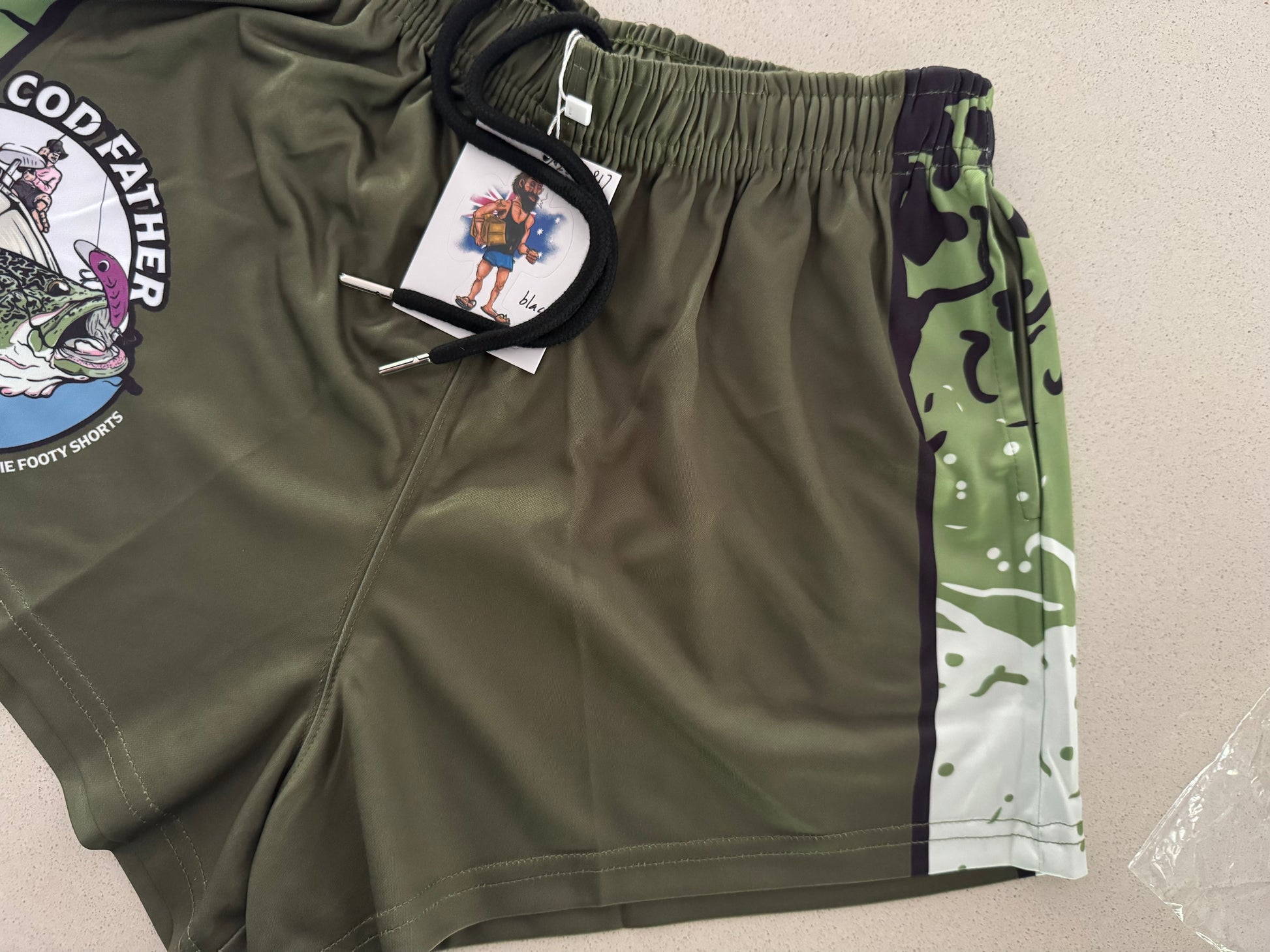 🔥NEW🔥 Cod Father Green Footy Shorts (With Pockets)