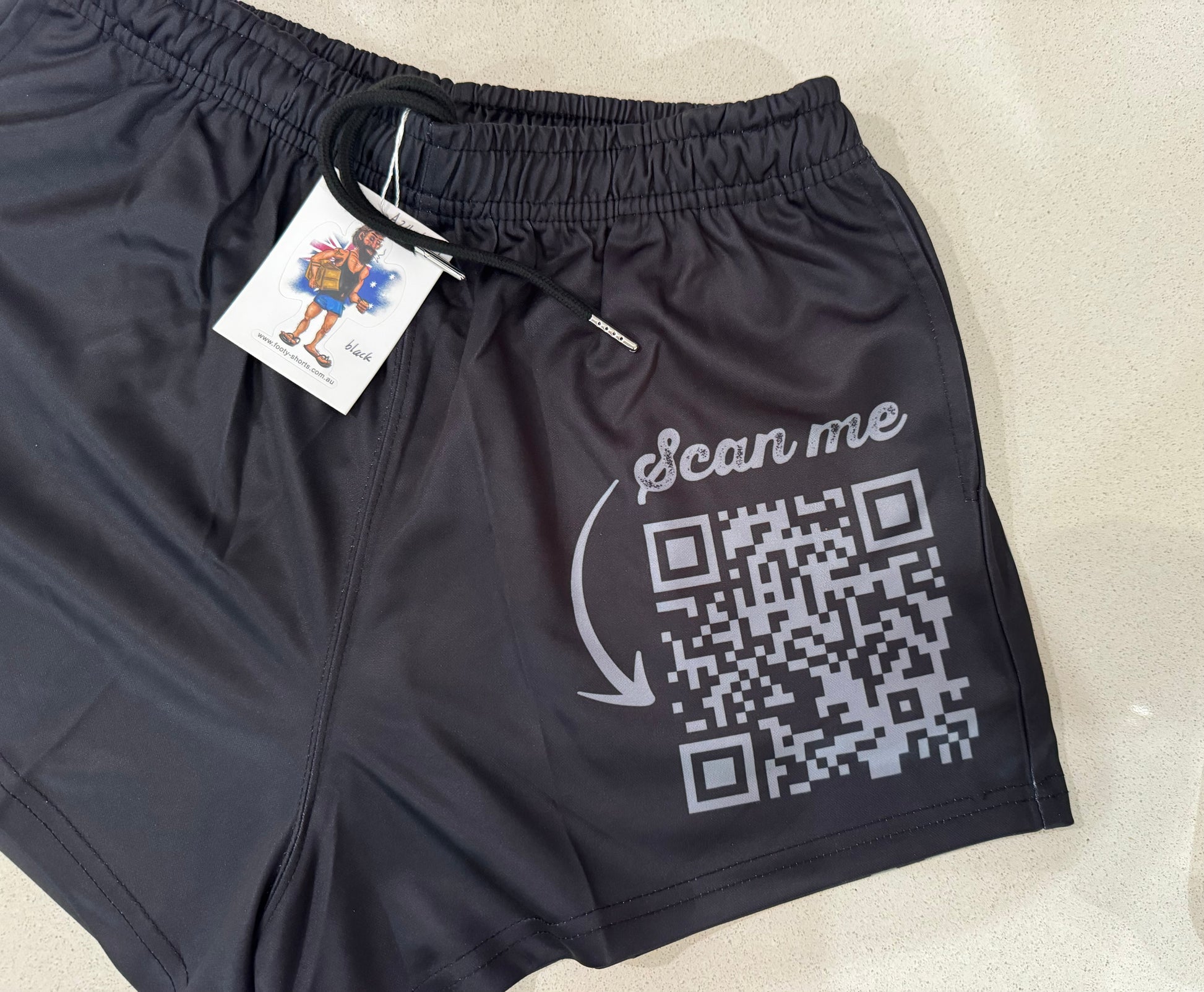 🚨👀 Risky Clicks Only. For the blokes who love a mystery and live for the stitch-up. These footy shorts are a social experiment waiting to happen—because you just know every curious unit at the pub is gonna pull their phone out and have a crack. Whether it scans or not? That’s their problem.